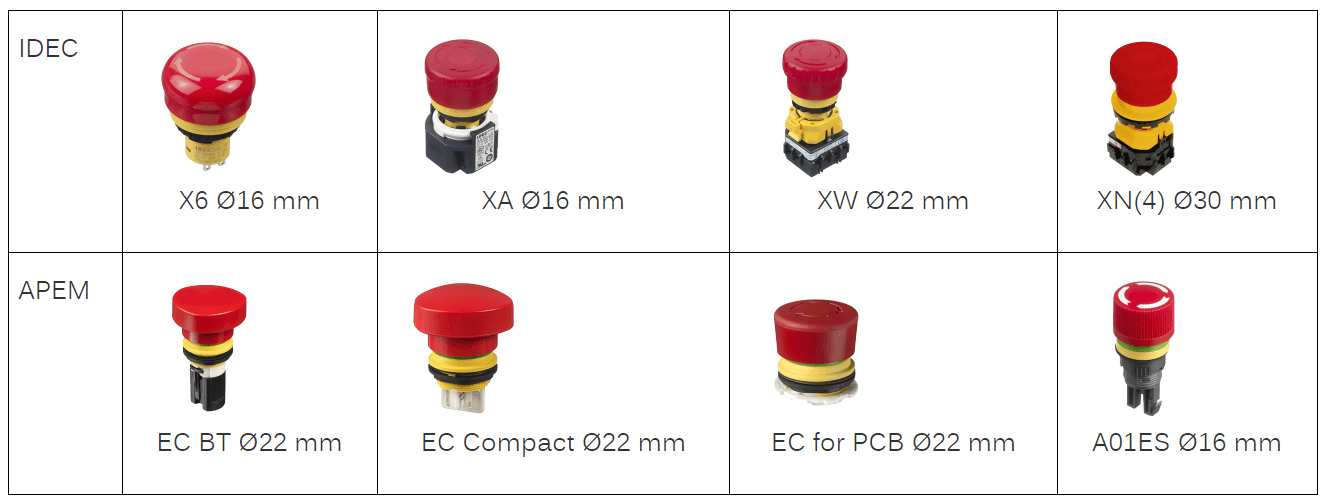 Hier einige Ausführungen von Not-Aus-Schaltern, die diesen Trends (kompakte Größe und hohe Anforderungen an die Zuverlässigkeit) entsprechen.